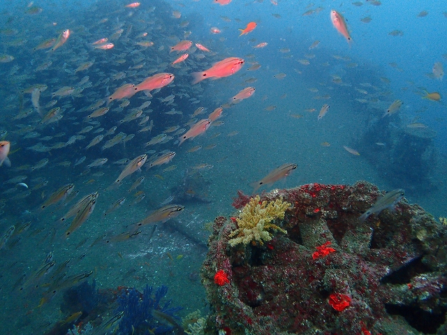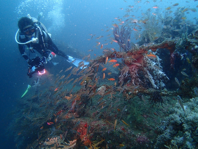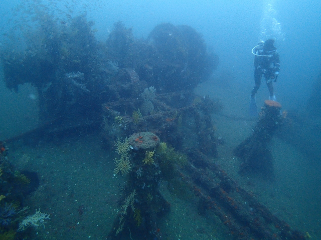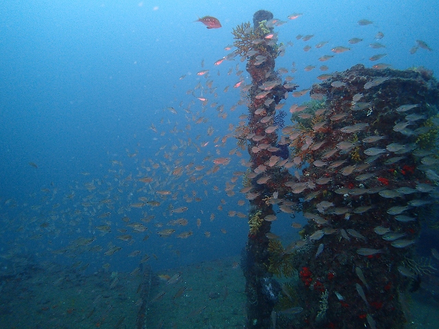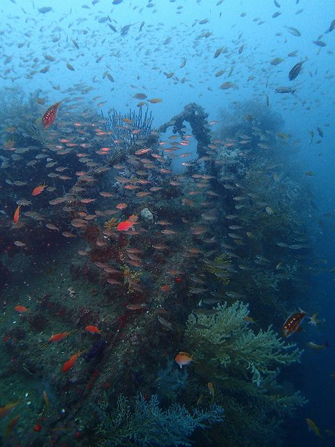 1ダイブ目は沈船です。このところ写真縦位置の方がうまく撮れるような気がしてきた。