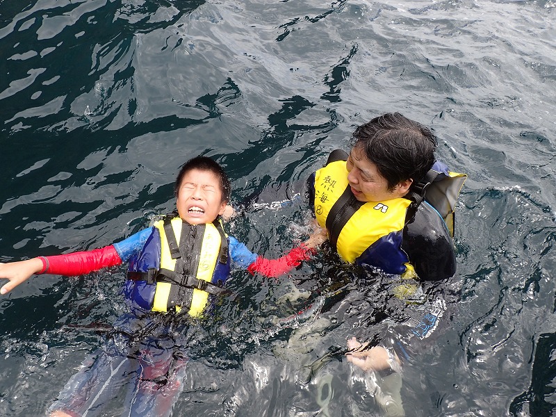 奇しくも両回ともに最初息子さんが怖くなってしまったスノーケル教室になってしまいました。