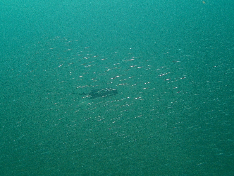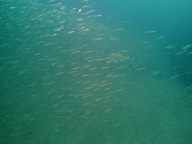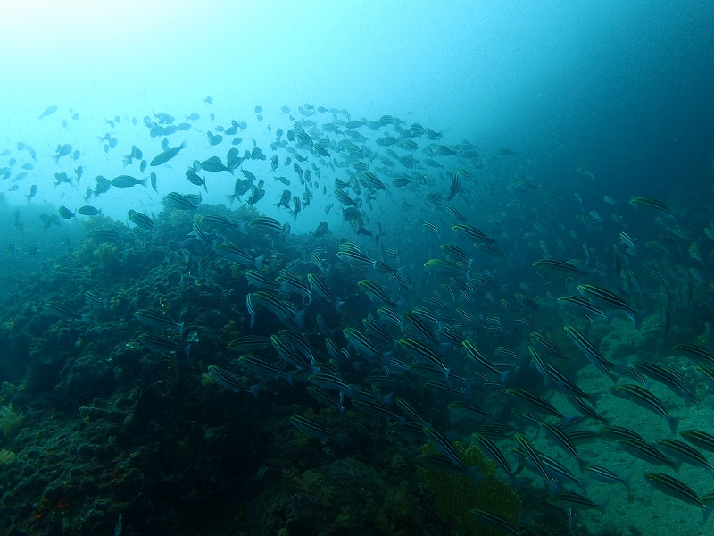 水は全体的に白く濁っています。潜降していく途中一瞬キレイになるのですが、降り着るとやっぱり濁ってます。