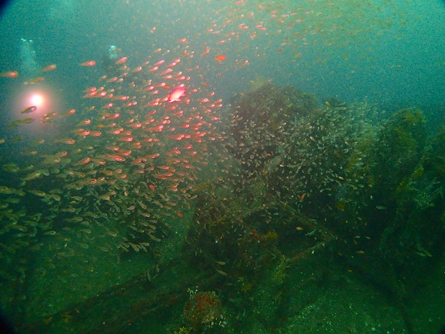 深場ではサクラダイのyoungが密集して群れてました。これも撮り方次第ですが、上手いことやると迫力あるのが撮れますよ!