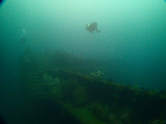 浅場が濁り天気も相まって海の中が暗い!下に降りると水はマズマズ見える感じがしますが、なにせ暗い。まるで夕暮れかナイトのようでした。