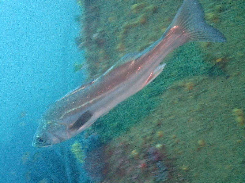 そんななか多数いるスズキのうちの1匹がぼーっとしていたので喜び勇んで写真を撮りました。