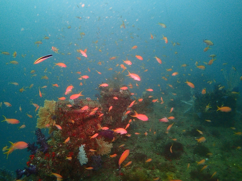 昨日いらしたインストラクターの方が週末と全然違う~と仰っていたので、漠然と「落ちたんかなぁ~」とか思っていましたが透視度下がり水温も下がり魚も減り…みたいな感じになってしまいました。
