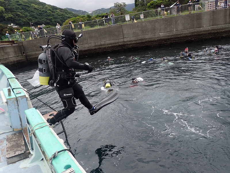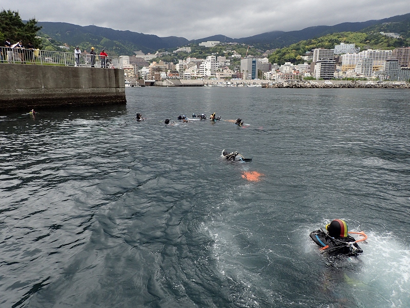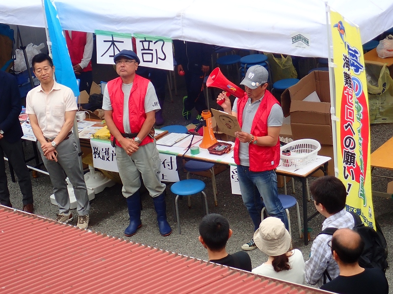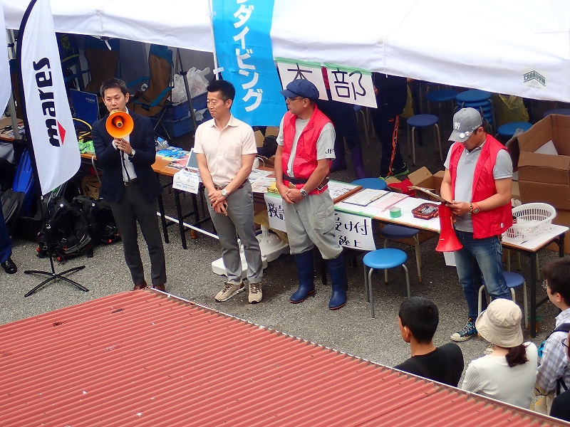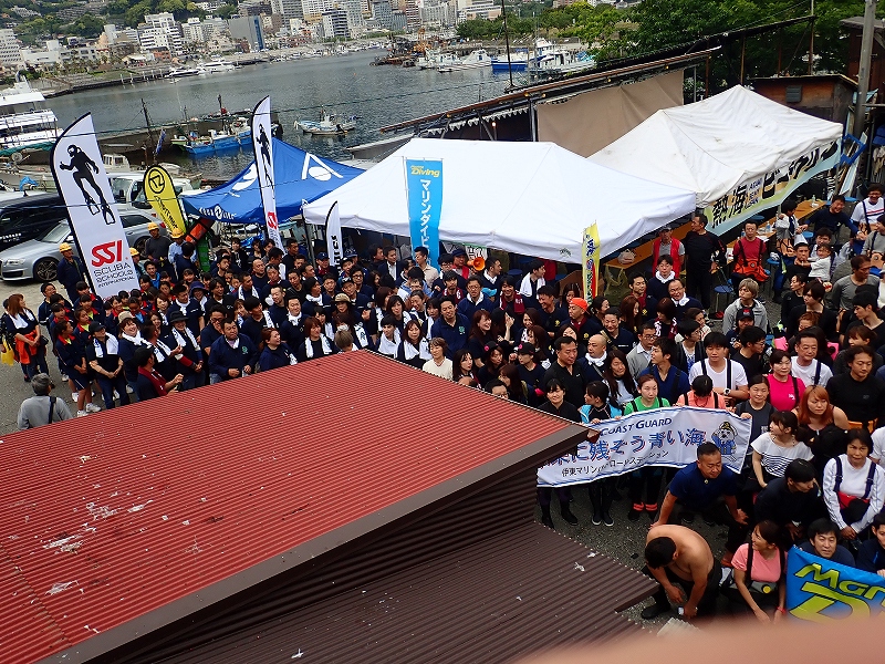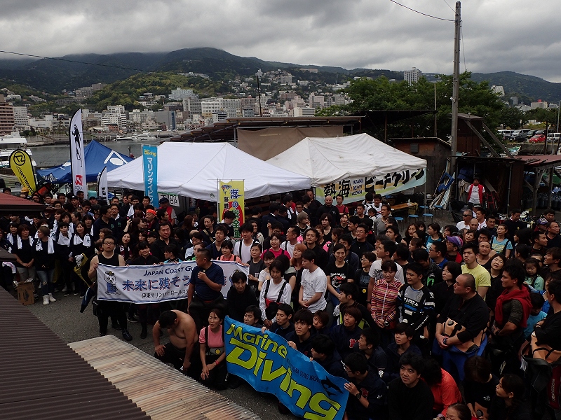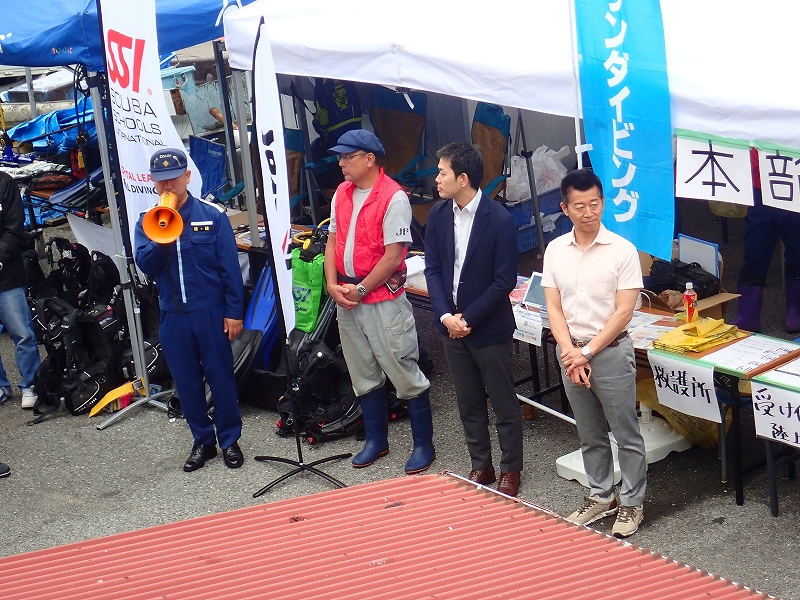 開会式では熱海市ダイビング協議会会長 川口健市議会議長、熱海市政より森本要副市長、下田海上保安部伊東MPS角田彰所長のお言葉のあと清掃活動に移ります。