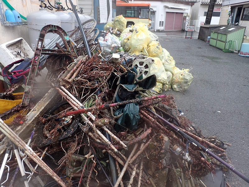 陸上では花火大会の翌日とあってか、花火のカスや缶瓶、不法投棄と思われるものなど多くのゴミを拾い集めることができたと思います。
