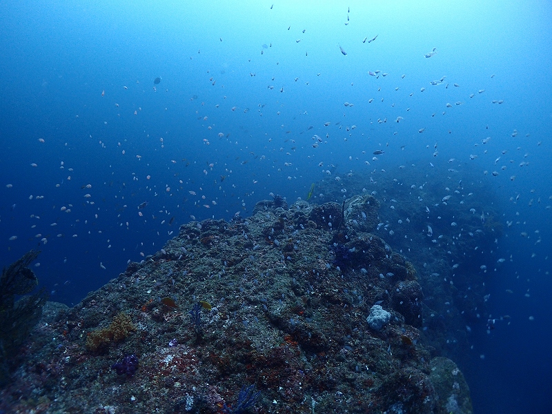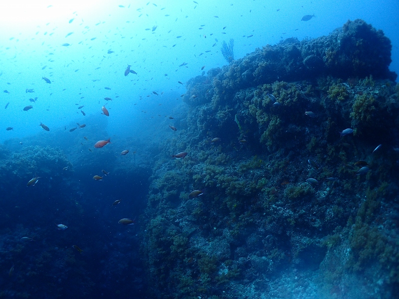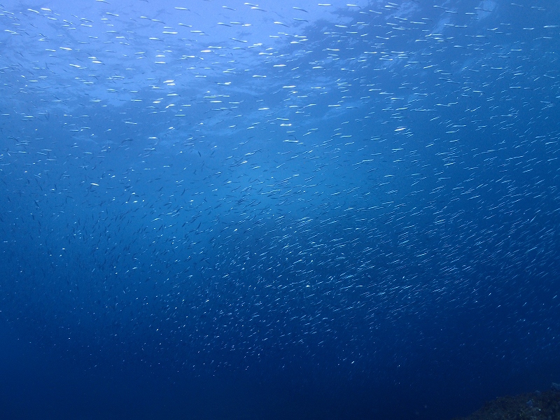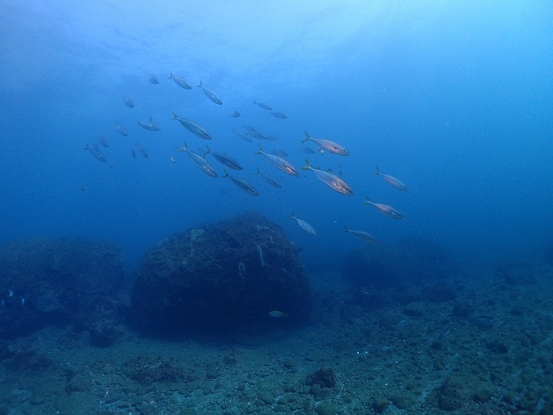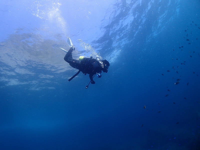 夏は相当に潜っていましたが、今日は最高に良い観音でした。今まで潜ったなかで一番良かったんじゃないかな!?潜降するとソラスズメダイの絨毯で、沖に出るとイナダがまわりました。もうげっぷが出るくらい魚の群れを見ることが出来最高でした。