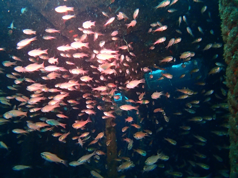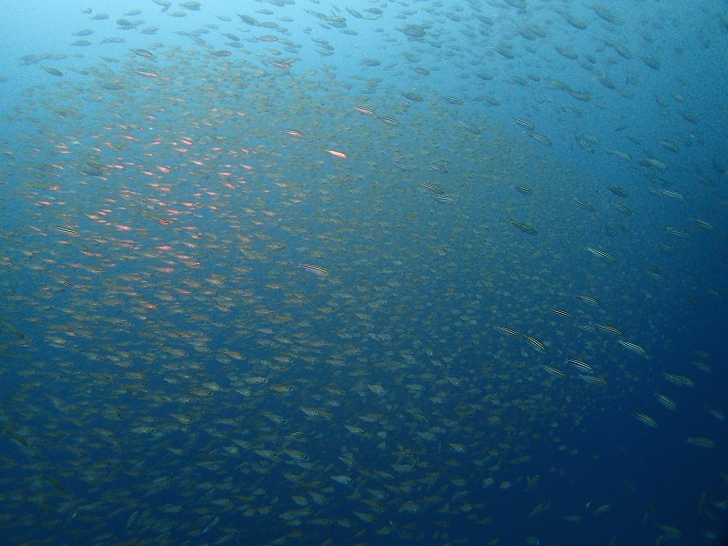 青くてイイ感じだったの!水面下にはイワシが群れていて、ナブラもありました。がしかし!2ダイブ目