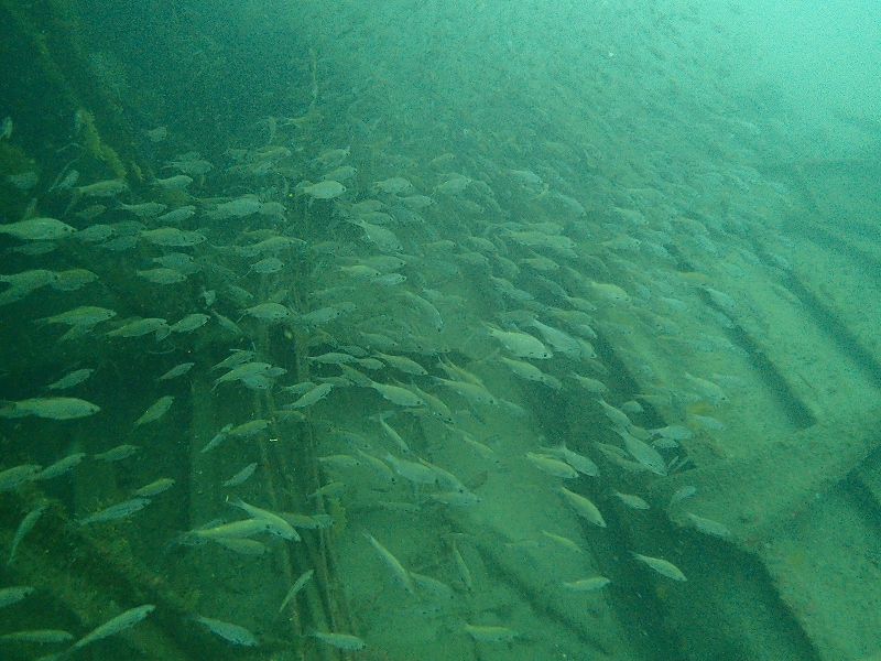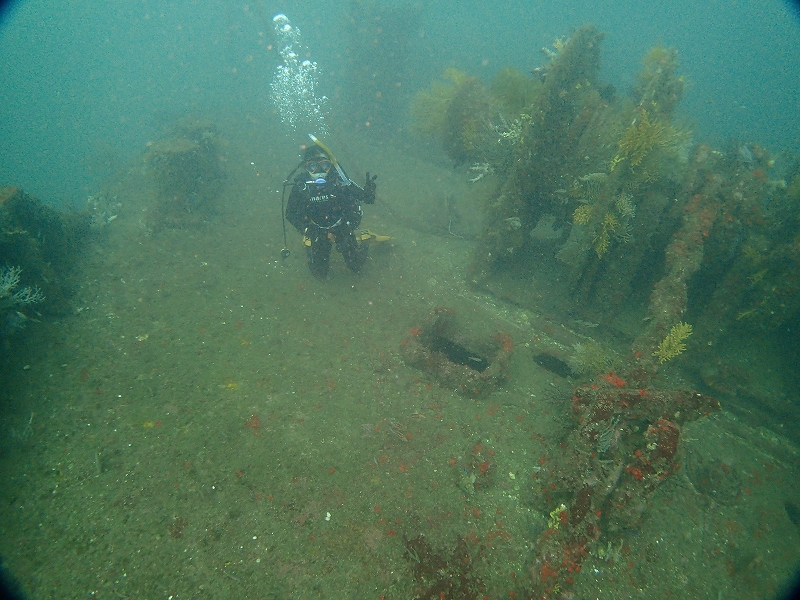 1本目ソーダイ根、2本目沈船の順番で潜ったんですが、写真で見る通りソーダイ根の方が水が断然キレイでした。