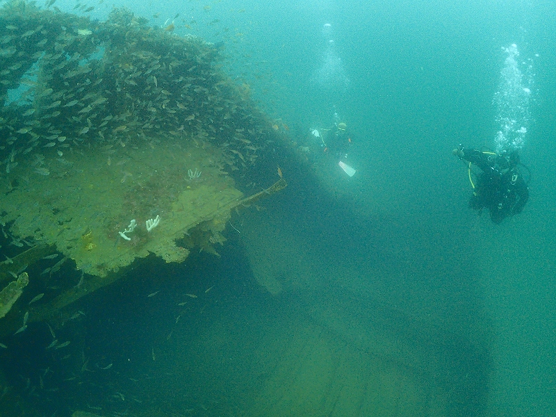 午前中はどうにか天気も持ち、晴れ間も見えましたが、2ダイブ目上がってくるとかなりの風雨で荒れ荒れです。