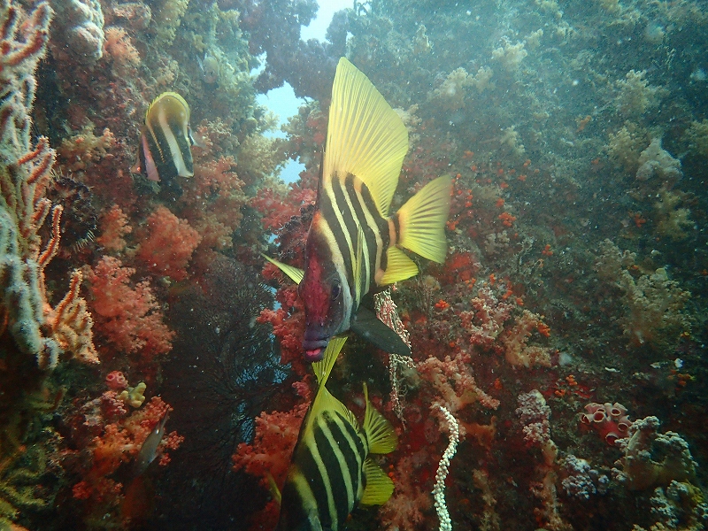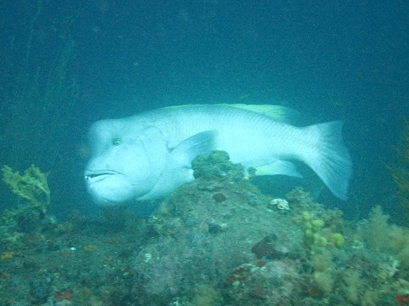 魚も比較的群れ群れでイイ感じ!東に落ちるとコブダイのお出迎え。
