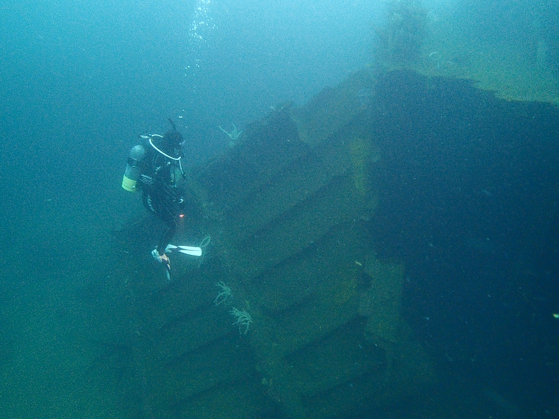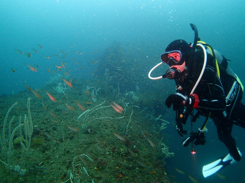 奥の方にはコブダイも見れましたが、撮れず…。そして降りた後に上をワラサが通過!も撮れず。