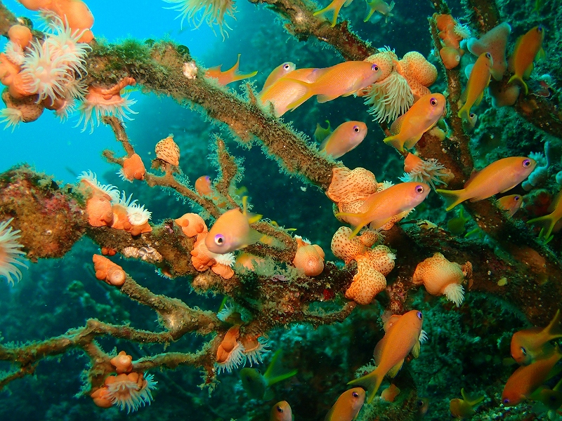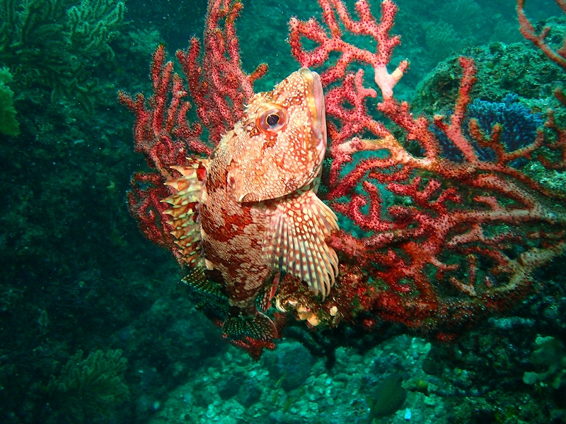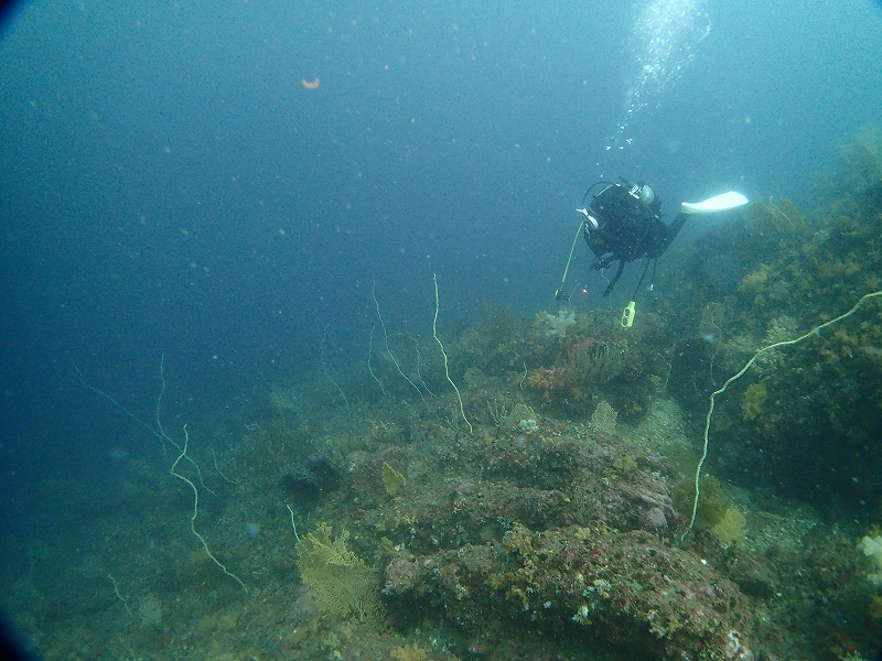 先週とは違い青いです!ちょうど潜っていた時に雨がドシャーっと降っていたのでちょっと暗い。