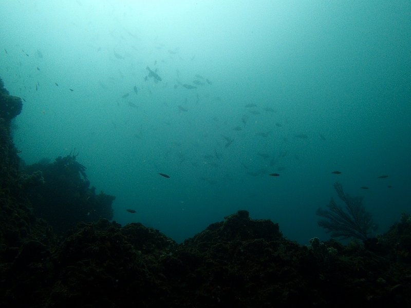 魚は相変わらず群れ群れですが、緊張感がなく上の方までばらけています。