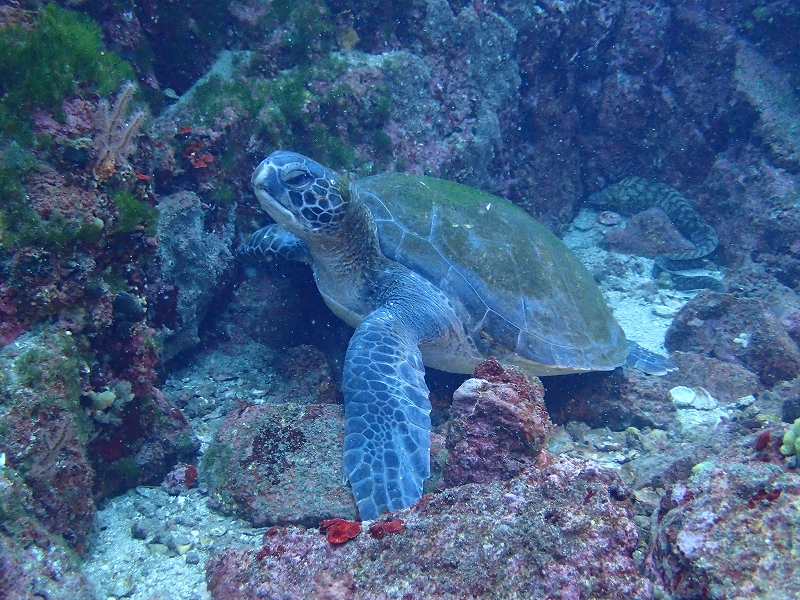 連投なのであっさりと今日は2ダイブ目ソーダイ根でカメさんに会えました。良い子でじっくり撮影させてくれました。今日はうねりが残ってしまい洞窟は見合わせました。明日は潜れるとイイなぁどのポイントも魚は多いですよ(^^)v