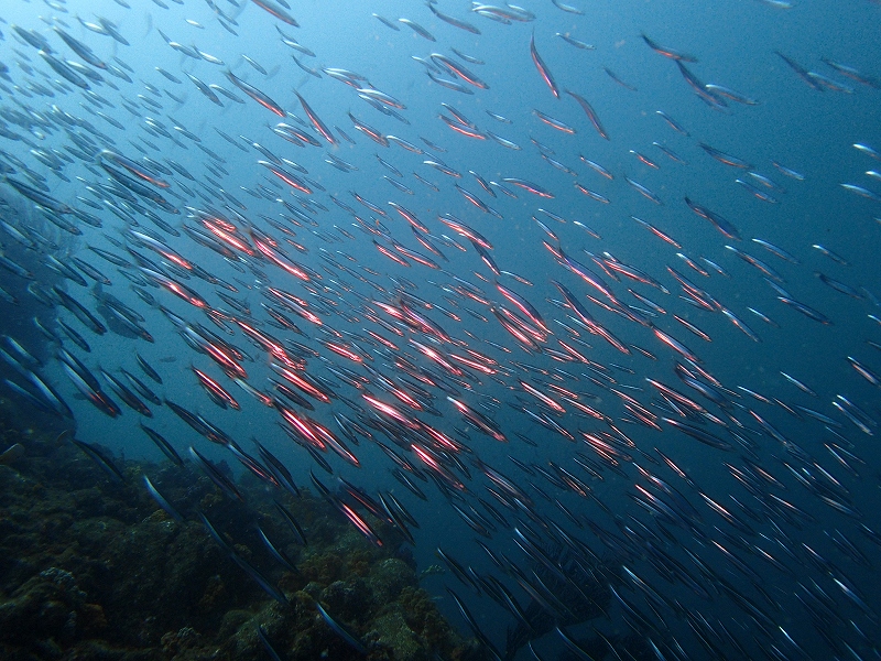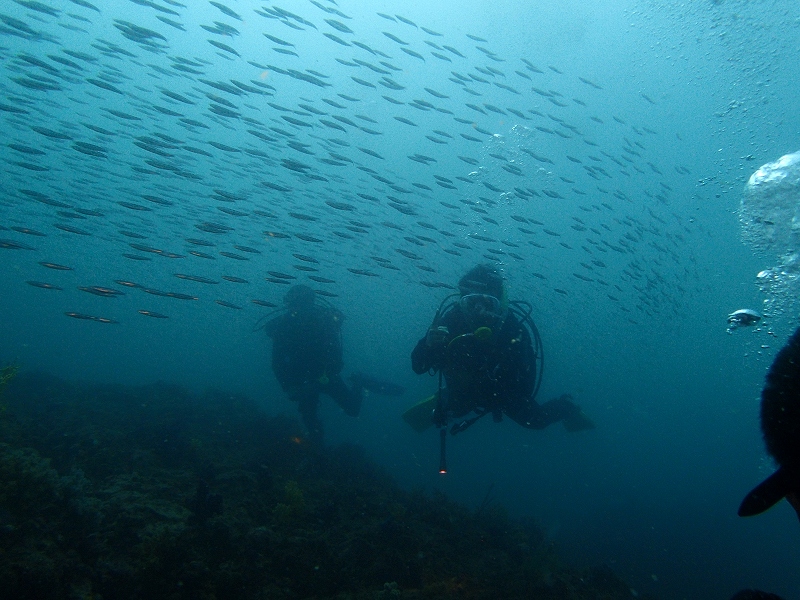 水は結構青くイイ感じゃぁ~んって(笑)そしていきなり不意にキビナゴの大きな群れに囲まれ追い抜かれビックリ(@@)そして終始周りで泳いでいる感じでした。