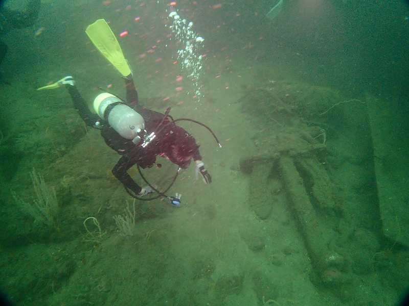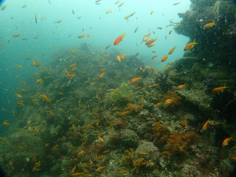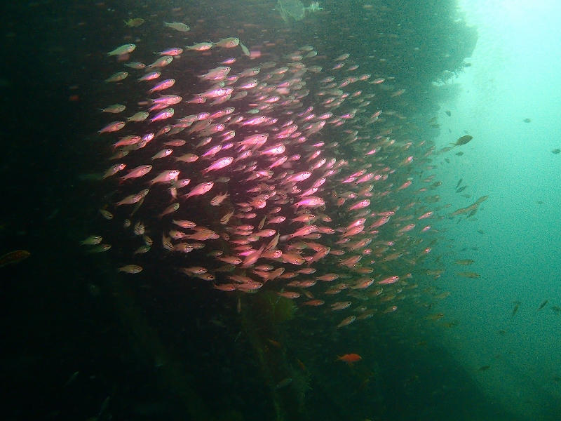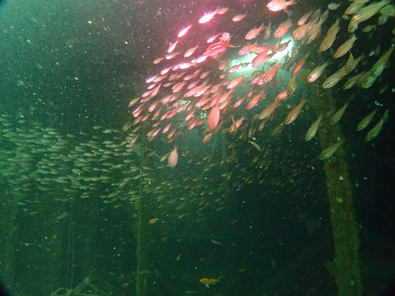 比較的沈船の下の方に群れていた気がします。そうそうネンブツダイの口内保育もう後半ですよ