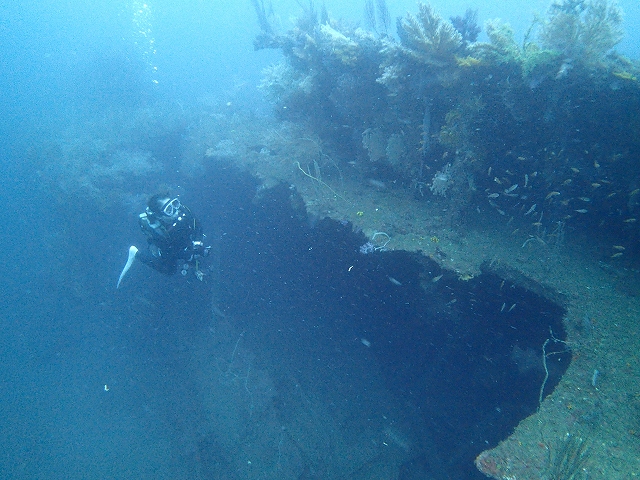 さて、海はといえば水温の壁が!沈船では下の方が21℃!水はキレイですが辛い(><)