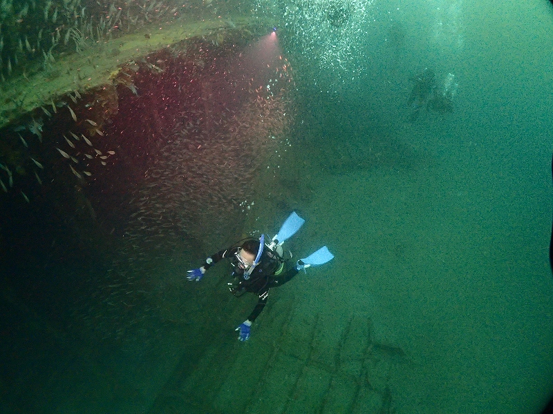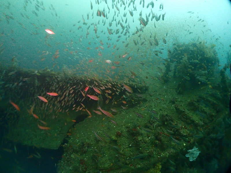 ところがビタガ根沈船に行ったグループも「濁ったー!」っと凹んでいたので、全般的に濁ってしまったようです。イントラさんが「あと一時間持ってくれていれば!」と言ってましたが本当に同感です。