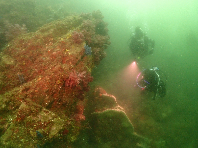 1ダイブ目の沈船は浅い所は濁ったものの降りればマズマズ見れていたので、残念だなぁ~と凹んでいるくらいでしたが、2ダイブ目のソーダイ根は全然見えない。