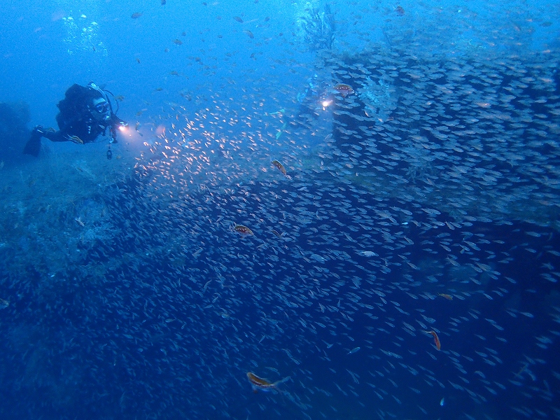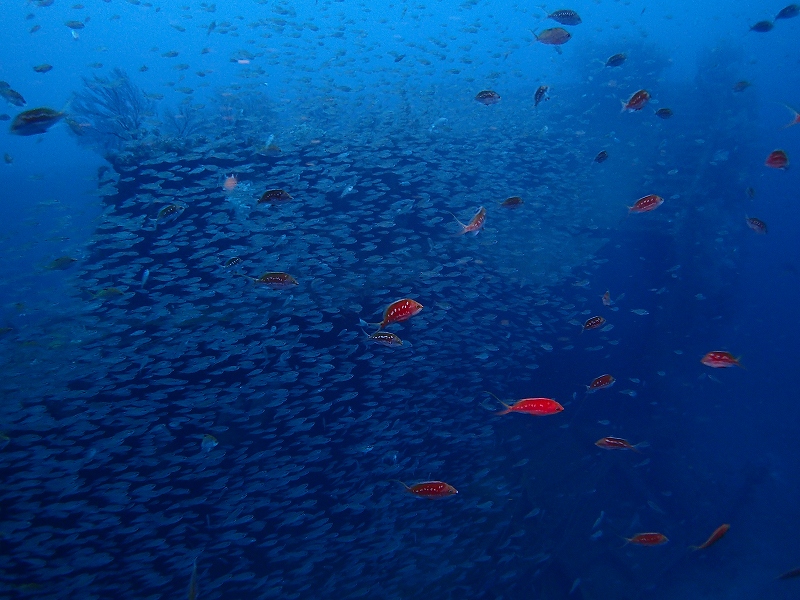 沈船後部ではサクラダイが物凄いことになっていました。潮が速くなってくれば間違えなく産卵が始まると思います。
