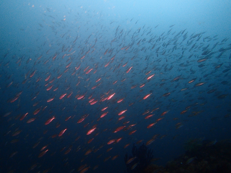 群れの魚は見れませんでした。見つけられなかったって言うのが正解ですね。