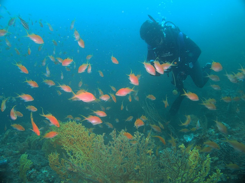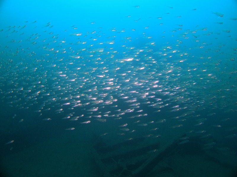 ちょっと白っぽいですが、まずまずの透視度です。死滅回遊魚もずいぶん増えて探すのが楽しい季節になりました!