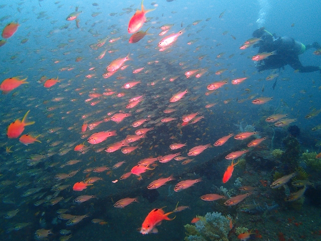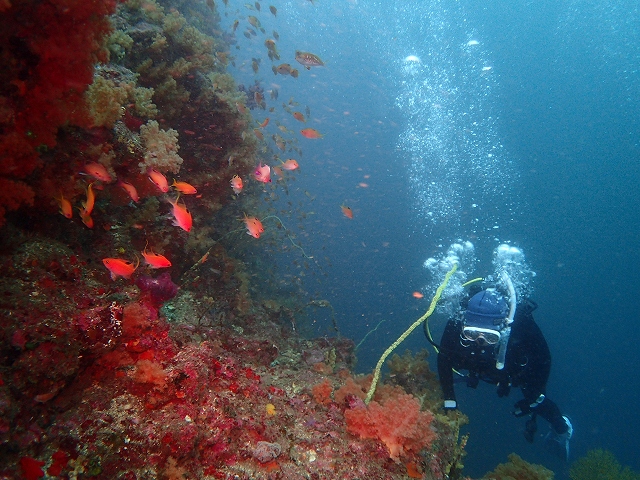 それと水温ですが、今日は上がった感じがしました。浅場が24~25℃!沈船で20℃の水温の場所がありましたが、ビタガ根では降りても当たらず24℃キープ、暖かです。