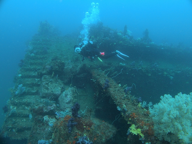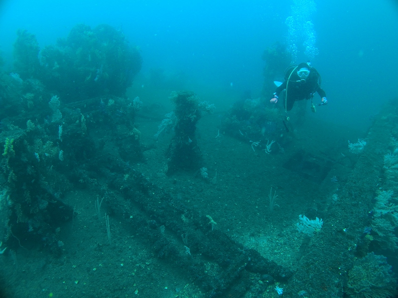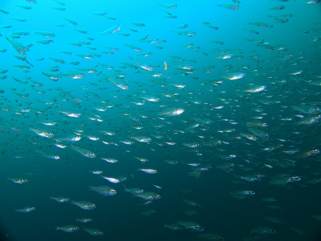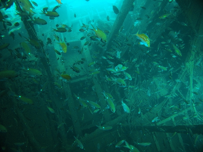 沈船は船首付近にネンブツダイ、イサキ、鯵が群れ群れです