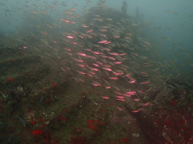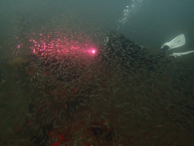 沈船では魚がひしめき合っていて溢れんばかりな感じでした。