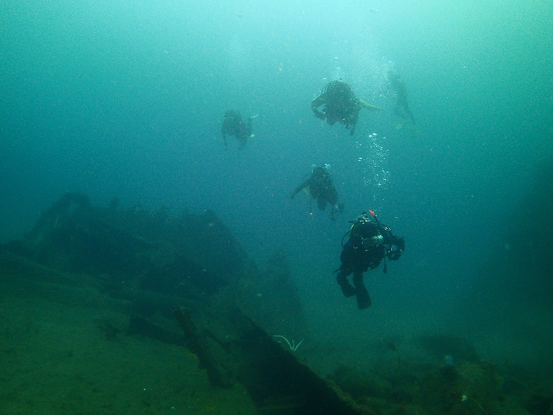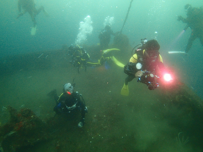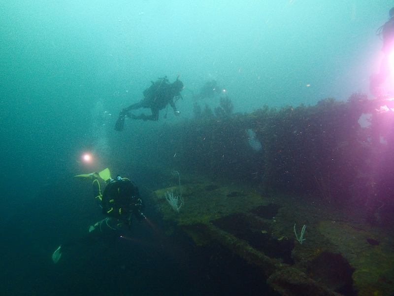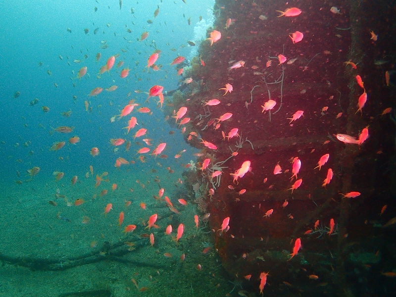 と思っていたところ、1ダイブ目は沈船まで降りたら見えるじゃないの!!!!
