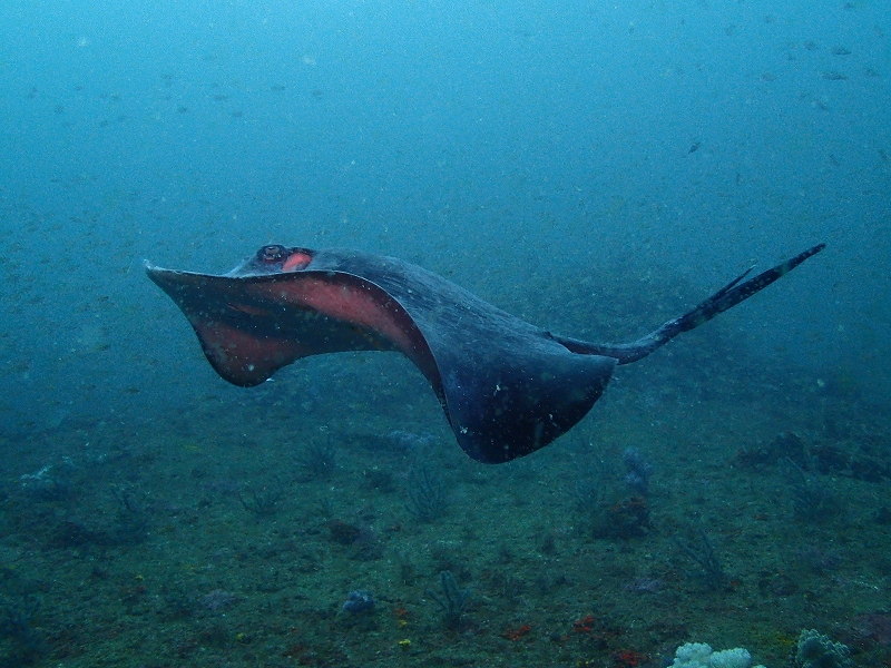 沈船でエイが中層を泳ぎながら迫ってきました!