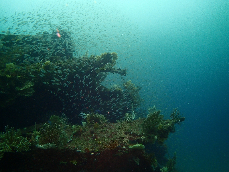 なんと沈船が劇的に回復で青い?いや、透明感がある海になりました。