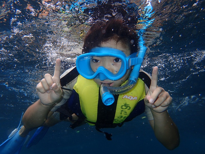 お父さんお母さんは波酔い状態になってしまい、辛い?印象に残るスノーケリングになってしまいました。