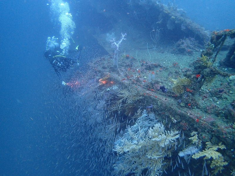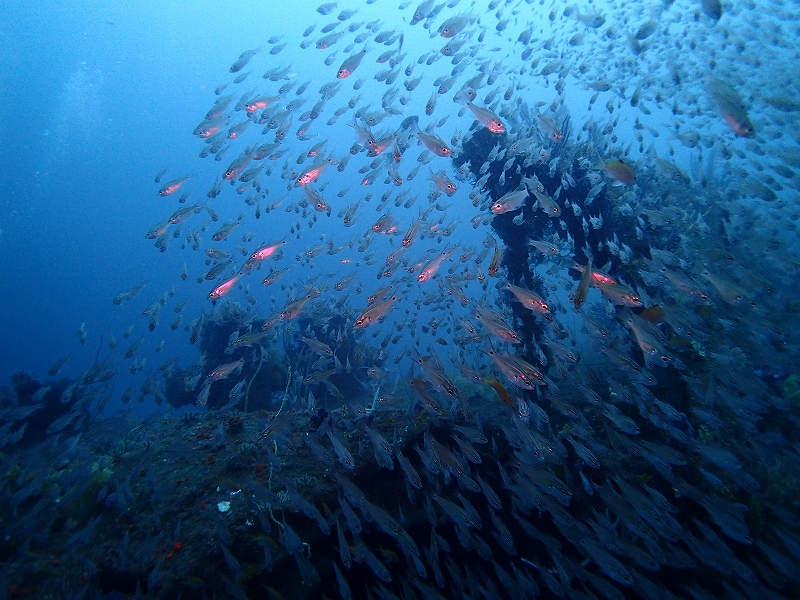 魚も溢れかえっています!沈船で鯵が吹っ飛びまわっているのできっと追いかける魚がいるんでしょうが、自分は今日は見ませんでした。