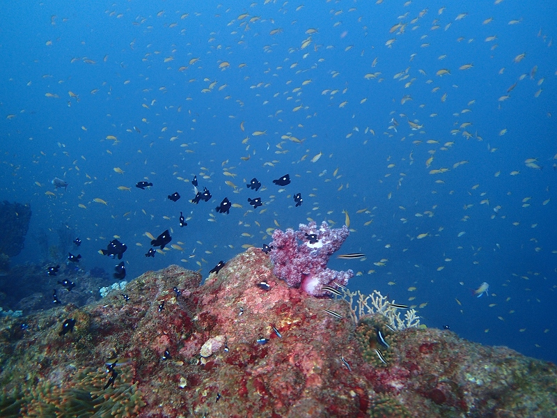 ハナダイが群れ群れでイイ感じでした。幼魚の群れ、成魚の群れ華やかですね~*^^*