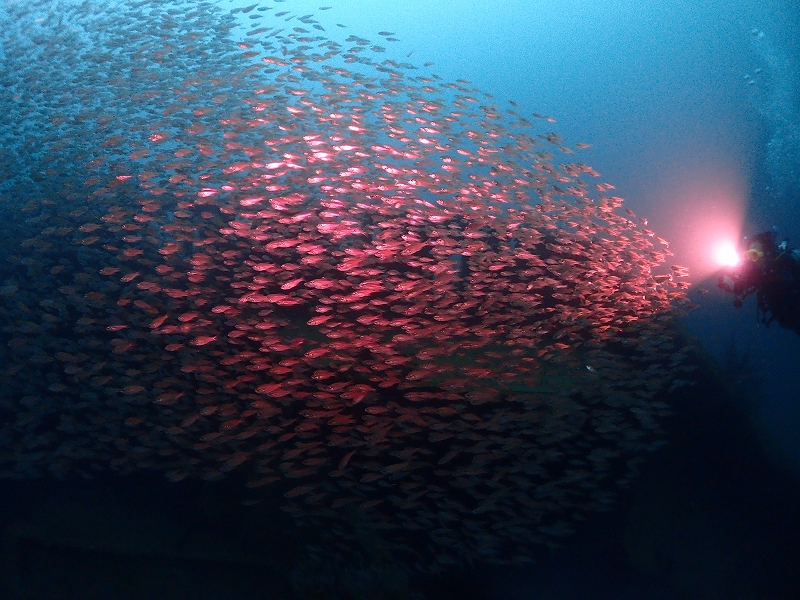 1ダイブ目まで半そでスーツで潜っていましたが、2ダイブ目は長袖出しました(笑)